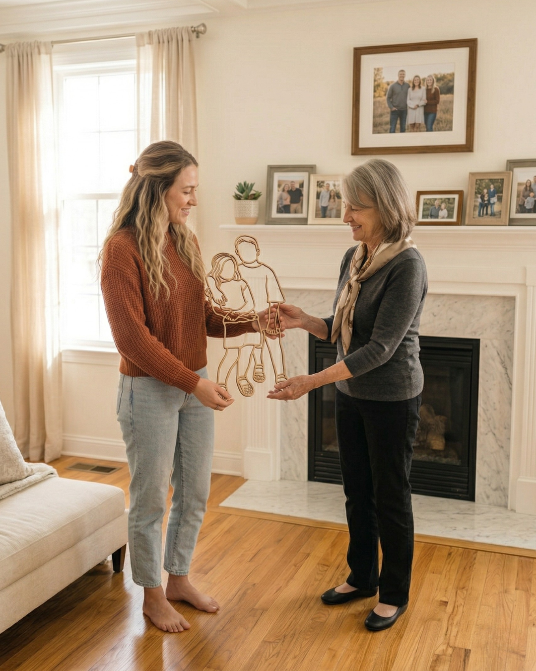 Van die allereerste foto als gezin of de trotse lach van opa met zijn kleinkindjes, tot een warm eerbetoon aan een groot gemis of een klein sterretje. Wij transformeren jouw meest dierbare momenten in handgetekende, houten lijnportretten.