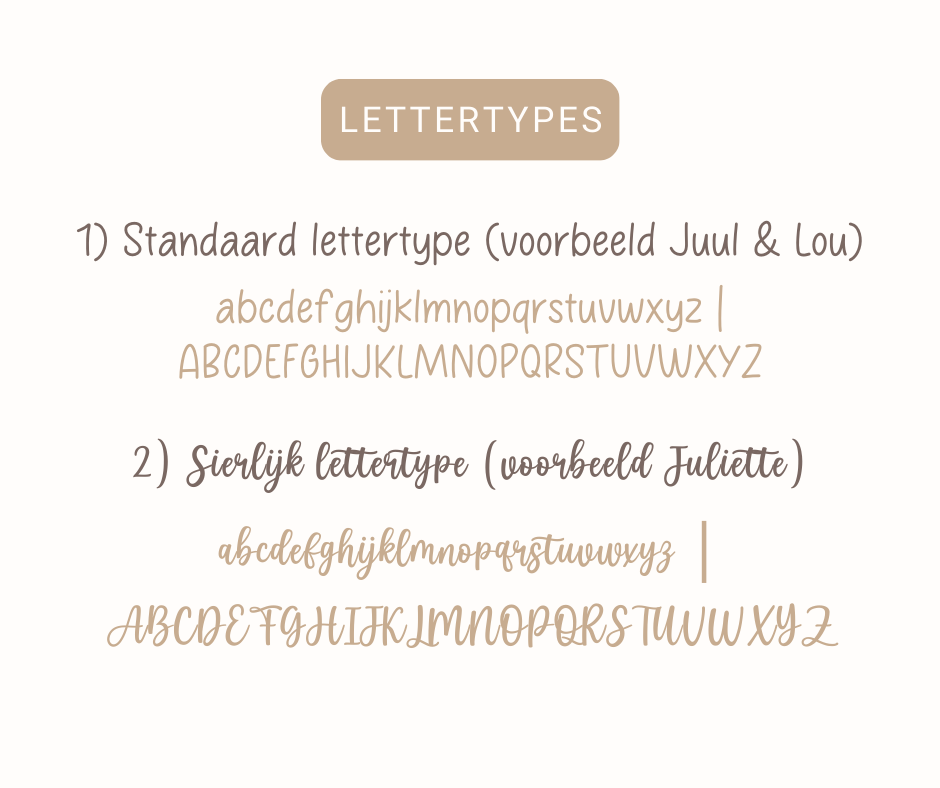 - Ontwerp Juliette & Lou: 7 cm (h) x 5,5 cm (b)